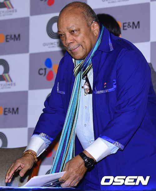 '팝의 거장' 퀸시 존스가 25일 오후 서울 삼성동 인터콘티넨탈 서울 코엑스에서 열린 내한 기자간담회 및 'CJ E&M과의 글로벌 뮤직 파트너십 MOU 체결식'에 참석하고 있다.