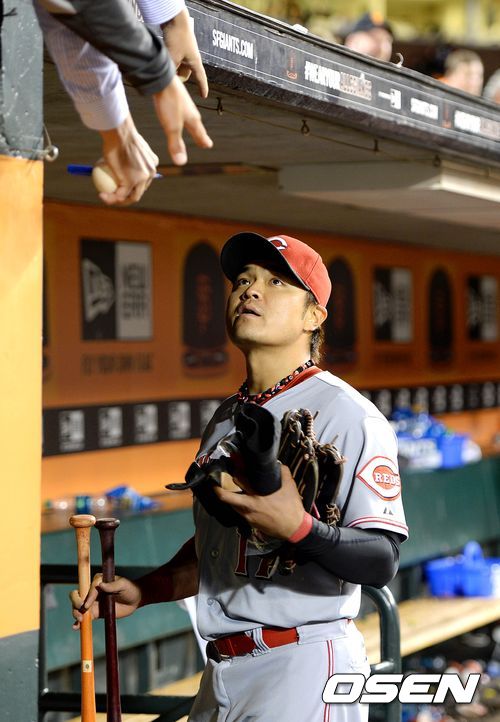 경기 종료 후 신시내티 추신수가 팬들의 사인 요청에 놀라고 있다. /sunday@osen.co.kr