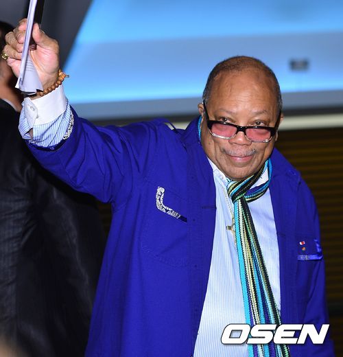 '팝의 거장' 퀸시 존스가 25일 오후 서울 삼성동 인터콘티넨탈 서울 코엑스에서 열린 내한 기자간담회 및 'CJ E&M과의 글로벌 뮤직 파트너십 MOU 체결식'에 참석해 취재진과의 질의응답을 마친 뒤 퇴장하고 있다.