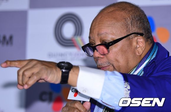 '팝의 거장' 퀸시 존스가 25일 오후 서울 삼성동 인터콘티넨탈 서울 코엑스에서 열린 내한 기자간담회 및 'CJ E&M과의 글로벌 뮤직 파트너십 MOU 체결식'에 참석해 취재진의 질문에 답하고 있다.
