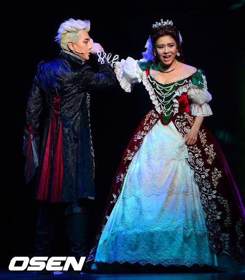 25일 오후 서울 예술의 전당 오페라 극장에서 열린 뮤지컬 '엘리자벳' 프레스콜에서 배우 옥주현과 박효신이 열연을 펼치고 있다
