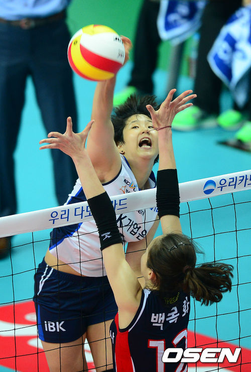 IBK기업은행의 좌우 쌍포 박정아(23득점)와 김희진(28득점)이 다시 한 번 팀의 승리를 이끌었다.