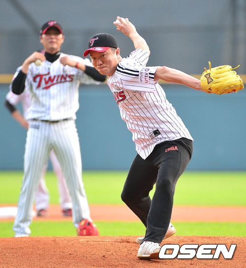 25일 오후 서울 잠실야구장에서 '2013 한국야쿠르트 세븐 프로야구' LG 트윈스 대 KIA 타이거즈의 경기가 열렸다. 시구자로 나선 방송인 컬투 김태균이 힘차게 공을 던지고 있다.