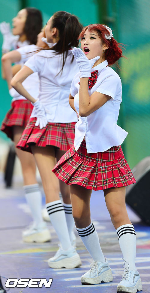 25일 오후 대구시민구장에서 열린 2013 한국야쿠르트 세븐프로야구 삼성 라이온즈와 NC 다이노스의 경기, 삼성 치어리더들이 무대 위에서 화려한 공연을 펼치고 있다.