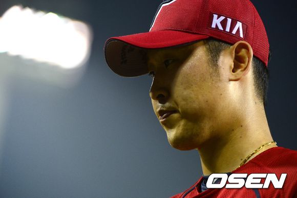 25일 오후 서울 잠실야구장에서 '2013 한국야쿠르트 세븐 프로야구' LG 트윈스 대 KIA 타이거즈의 경기가 열렸다. 8회말 LG 공격 2사 1루 상황, KIA 선발 5번타자 이병규를 내야 땅볼로 이끌며 무실점으로 이닝을 마무리 지은 뒤 더그아웃으로 향하고 있다.
