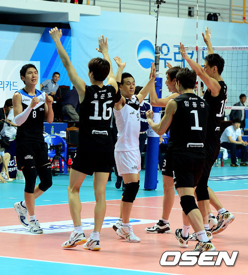 승리를 거둔 현대캐피탈 선수들이 기뻐하고 있다. /youngrae@osen.co.kr