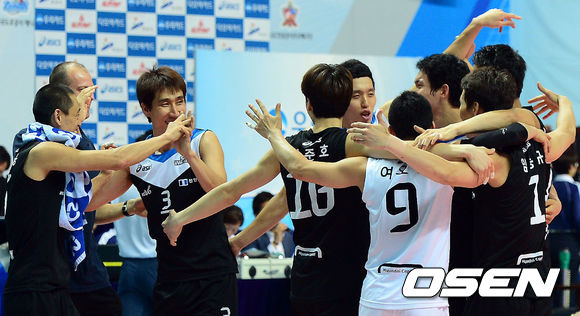 승리를 거둔 현대캐피탈 선수들이 기뻐하고 있다. /youngrae@osen.co.kr
