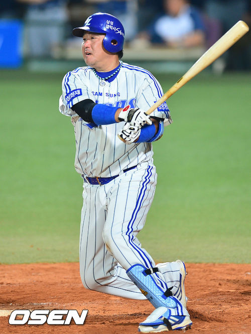 25일 오후 대구시민구장에서 열린 2013 한국야쿠르트 세븐프로야구 삼성 라이온즈와 NC 다이노스의 경기, 8회말 1사 주자 1,2루 삼성 진갑용이 좌익수 왼쪽 2타점 적시타를 날리고 있다.