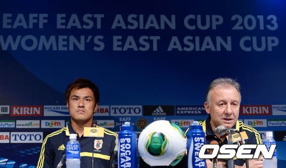 알베르토 자케로니 감독이 지휘하는 일본 축구대표팀은 25일 화성종합경기타운서 열린 2013 동아시아축구연맹(EAFF) 동아시안컵 호주와 2차전에서 3-2로 승리를 거뒀다. 일본(1승 1무)은 이날 승리로 한국(2무), 중국(2무), 호주(1무 1패) 등 4개국이 참가한 이번 대회서 첫 승을 신고하고 1위로 올라섰다.