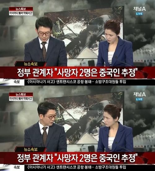 채널A '뉴스 특보'는 지난 7일 새벽 발생한 아시아나 여객기 착륙 사고의 경위 및 사상자 등에 대한 소식을 전달하면서 “한국인이 아닌 중국인 2명이 사망자로 신원이 지금 파악이 됐다는 소식이 들어와 있습니다. 뭐 우리 입장에서는 다행이라고 말할 수도 있을 것 같은데요"라고 말하는 내용을 방송한 바 있다.