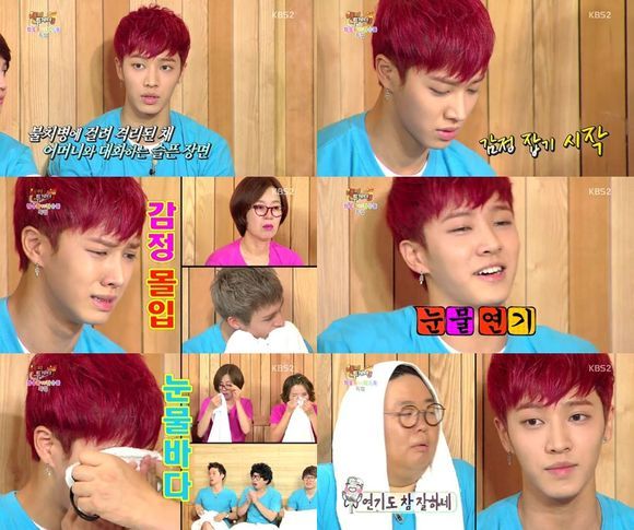 그는 이날 개그맨 류담과의 연기 대결에서 금세 감정을 잡으며 놀라운 연기를 펼쳤다. 과거 자신이 했던 드라마 속 한 장면을 연기한 그는 어머니와의 눈물의 전화통화 장면을 재연해내며 금세 눈물을 흘렸다.