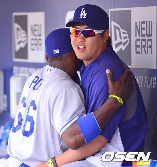 류현진(26, LA 다저스)의 임무는 어디까지나 마운드에서 좋은 투구 내용으로 팀의 승리를 이끄는 것이다. 그런데 하나의 임무가 더 추가될 기세다. 바로 팀의 장난꾸러기로 등극한 야시엘 푸이그(23)를 돌보는 것이다. 미 언론의 익살스러운 비유다.