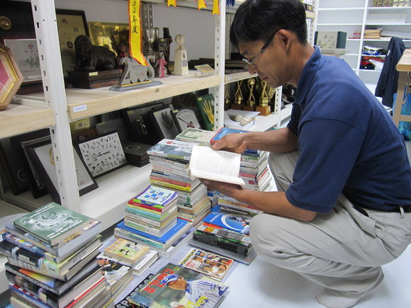 자신이 기증한 책을 살펴보고 있는 최치환 씨.