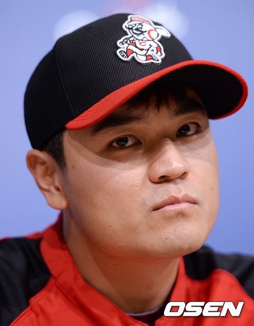 26일(한국시간) 미국 캘리포니아주 로스앤젤레스 다저스타디움에서 열린 2013 메이저리그 LA 다저스와 신시내티 레즈의 경기에 앞서 신시내티 추신수가 기자회견을 하고 있다.
