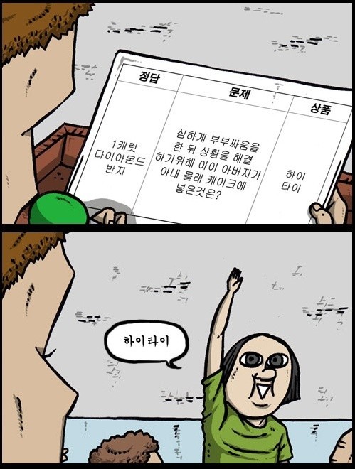 하지만 조석이 귀띔한 정답은 경품명이었다. 정답은 다이아몬드 반지였으나 조석이 잘 못 이해한 것이다. 결국 애봉은 정답을 '하이타이'라고 외쳐 모든 이들을 뒤로 넘어지게 했다.