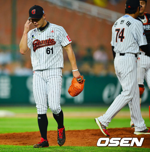 26일 오후 부산 사직구장에서 열린 2013 한국야쿠르트 세븐프로야구 롯데 자이언츠와 SK 와이번스의 경기, 4회초 무사 주자 1,2루 롯데 선발 허준혁이 강판당하고 있다.