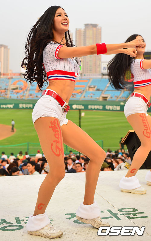 26일 오후 부산 사직구장에서 열린 2013 한국야쿠르트 세븐프로야구 롯데 자이언츠와 SK 와이번스의 경기, 롯데 치어리더 박기량이 화려한 무대를 선보이고 있다.