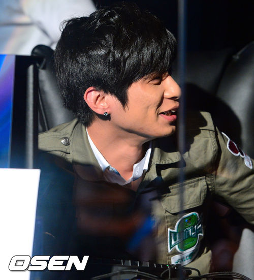 26일 오후 서울 용산 e스포츠 상설 경기장에서 열린 '핫식스 리그 오브 레전드 챔피언스(이하 롤챔스) 서머 2013' 16강 11회차 제닉스 블라스트와 진에어 그린윙스 팰컨스의 경기, 1세트를 승리한 진에어 팰컨스 선수들이 승리의 기쁨을 나누고 있다.