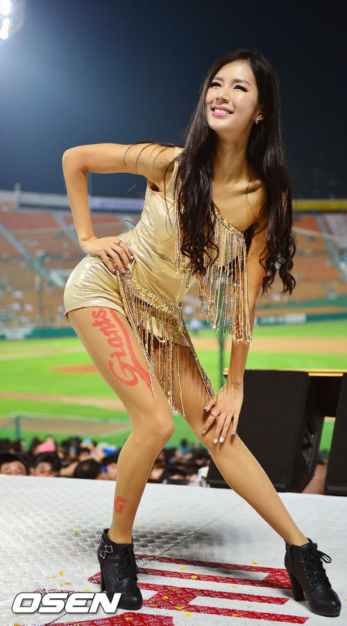 26일 오후 부산 사직구장에서 열린 2013 한국야쿠르트 세븐프로야구 롯데 자이언츠와 SK 와이번스의 경기, 롯데 치어리더 박기량이 화려한 특별무대를 선보이고 있다.