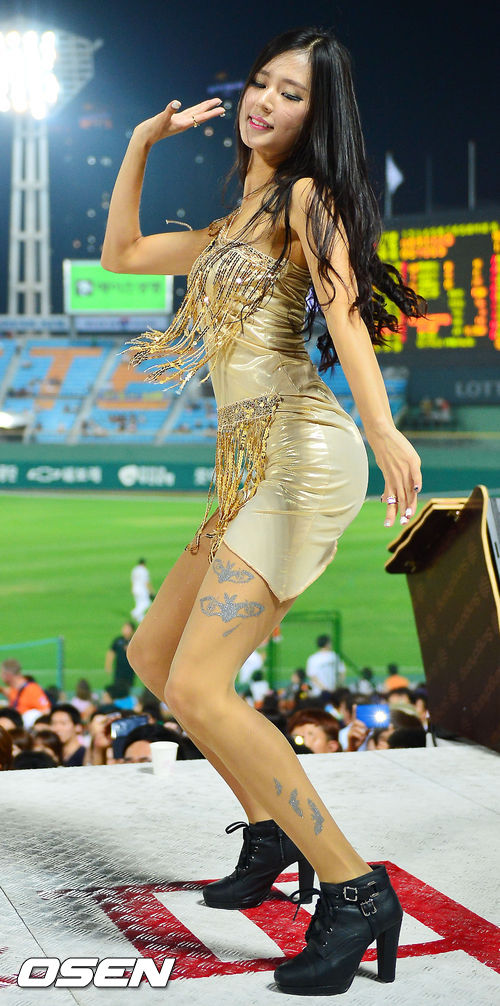 26일 오후 부산 사직구장에서 열린 2013 한국야쿠르트 세븐프로야구 롯데 자이언츠와 SK 와이번스의 경기, 롯데 치어리더 박기량이 화려한 특별무대를 선보이고 있다.