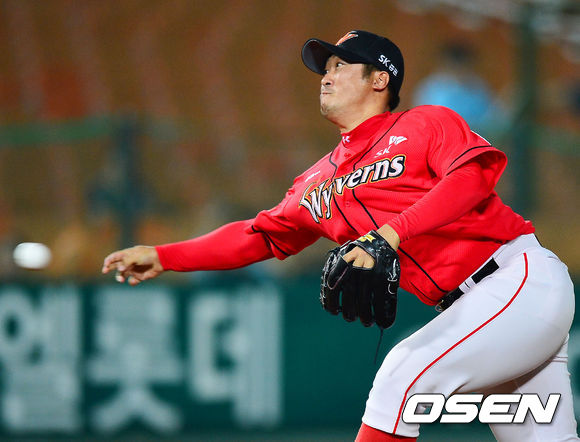 26일 오후 부산 사직구장에서 열린 2013 한국야쿠르트 세븐프로야구 롯데 자이언츠와 SK 와이번스의 경기, 8회말 마운드에 오른 SK 임경완이 힘차게 공을 뿌리고 있다.