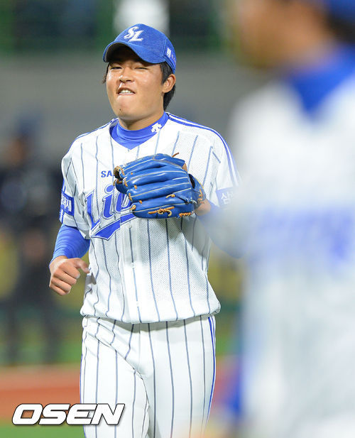 김민성 타석 때 가벼운 어깨 통증을 느낀 심창민은 벤치에 교체 사인을 보냈고 결국 안지만에게 마운드를 넘겼다.