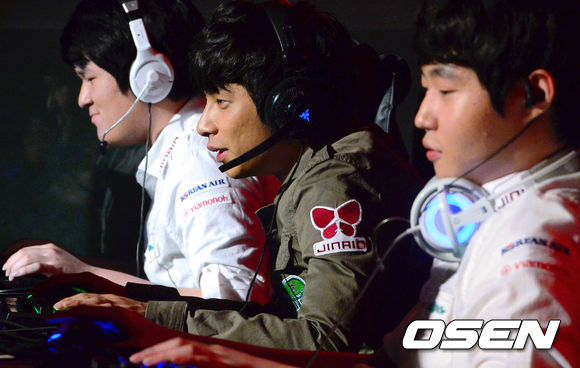 진에어 팰컨스는 26일 서울 용산 온게임넷 e스포츠 상설경기장에서 벌어진 '2013 LOL 챔피언스 리그(이하 롤챔스)' 서머 시즌 제닉스 블라스트와 경기를 2-0 으로 승리하며 '롤챔스' 8강 진출 티켓을 따냈다. 2승 1패로 승점 6점을 확보한 진에어 팰컨스는 MVP 오존에 이어 A조로 8강에 올라갔다.