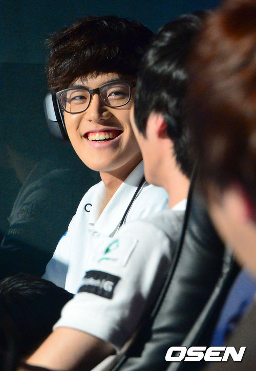 26일 오후 서울 용산 e스포츠 상설 경기장에서 열린 '핫식스 리그 오브 레전드 챔피언스(이하 롤챔스) 서머 2013' 16강 11회차 CTU와 CJ 블레이즈의 경기, 1세트 승리후 블레이즈 이호종이 미소 지으며 동료들과 이야기를 나누고 있다