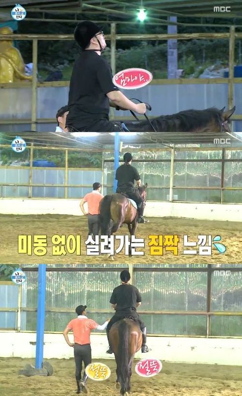 가수 데프콘이 무거운 몸무게 덕분에 위태로운 승마를 즐겨야 했다.
