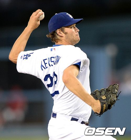 27일(한국시간) 미국 캘리포니아주 로스앤젤레스 다저스타디움에서 열린 2013 메이저리그 LA 다저스와 신시내티 레즈의 경기, 1회초 무사에서 LA 선발 투수 커쇼가 힘차게 공을 던지고 있다.