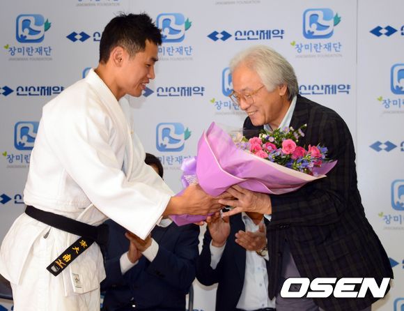 후원 협약식에는 김한기(신신제약 대표이사), 장미란, 그리고 영국 올림픽 유도 금메달리스트 송대남, 펜싱 동메달 리스트 최병철이 참석했다.