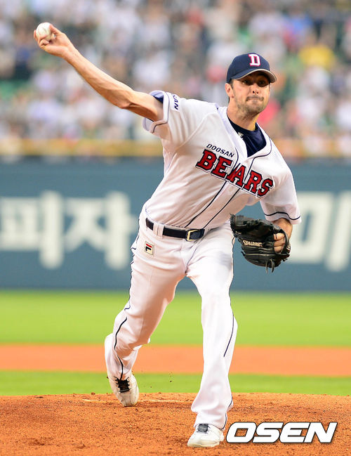 두산 핸킨스이 이날 열리는 LG와의 잠실 라이벌전에 선발로 등판했다. 한국 무대 데뷔전이다. 핸킨스는 개릿 올슨을 대신해 두산이 영입한 새 외국인 투수. 지난 2006년 피츠버그 파이어리츠 유니폼을 입고 프로생활을 시작했다.