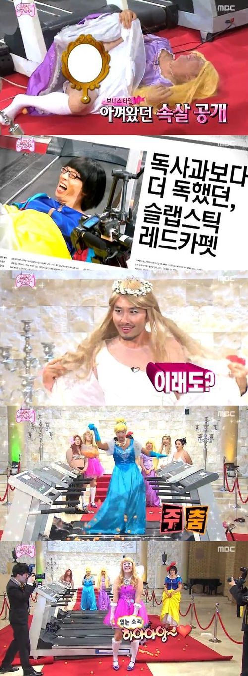 27일 오후 방송된 MBC 예능프로그램 '무한도전'에서는 공주 분장을 한 채 런닝머신 위를 마치 레드카펫처럼 걷는 멤버들의 모습이 전파를 탔다.