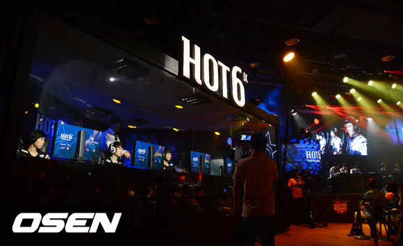 27일 오후 서울 용산 e스포츠 상설 경기장에서 열린 '핫식스 리그 오브 레전드 챔피언스(이하 롤챔스) 서머 2013' 16강 12회차 LG IM 2팀과 나진 화이트 실드 C조 경기, 두 팀 선수들이 열띤 경기를 펼치고 있다.
