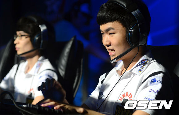 27일 오후 서울 용산 e스포츠 상설 경기장에서 열린 '핫식스 리그 오브 레전드 챔피언스(이하 롤챔스) 서머 2013' 16강 12회차 LG IM 2팀과 나진 화이트 실드 C조 경기, 나진 화이트 실드 강범현이 경기에 임하고 있다.