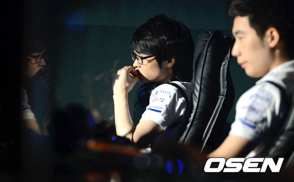 27일 오후 서울 용산 e스포츠 상설 경기장에서 열린 '핫식스 리그 오브 레전드 챔피언스(이하 롤챔스) 서머 2013' 16강 12회차 LG IM 2팀과 나진 화이트 실드 C조 경기에 앞서 나진 화이트 실드 백영진이 경기를 기다리고 있다.