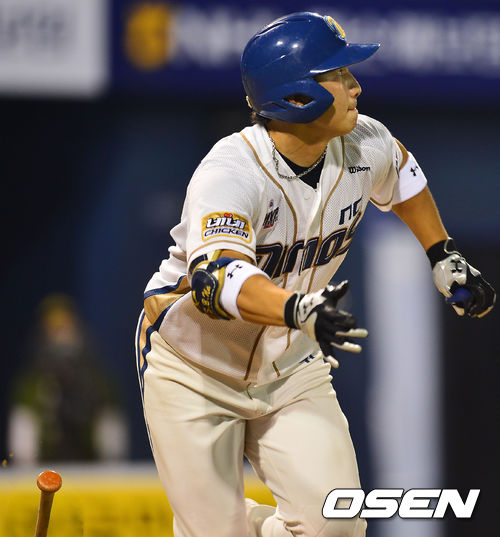 27일 오후 창원 마산야구장에서 열린 2013 한국야쿠르트 세븐프로야구 NC 다이노스와 KIA 타이거즈의 경기, 5회말 1사 주자 1루 NC 나성범이 좌중월 투런 홈런을 날리고 있다.