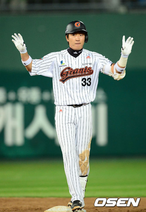 그리고 정훈은 거짓말같이 우측 펜스를 직접 맞히는 역전 2타점 3루타를 작렬시켰다. 2루를 거쳐 3루를 밟은 정훈은 격한 세리머니 대신 불끈 두 주먹을 쥐며 소소하게 기쁨을 즐겼다.