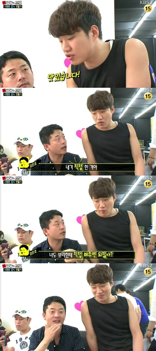 이날 김준호는 노량진 시장에서 산 오징어로 회무침을 만들어 '개그콘서트' 식구들에게 대접했다.