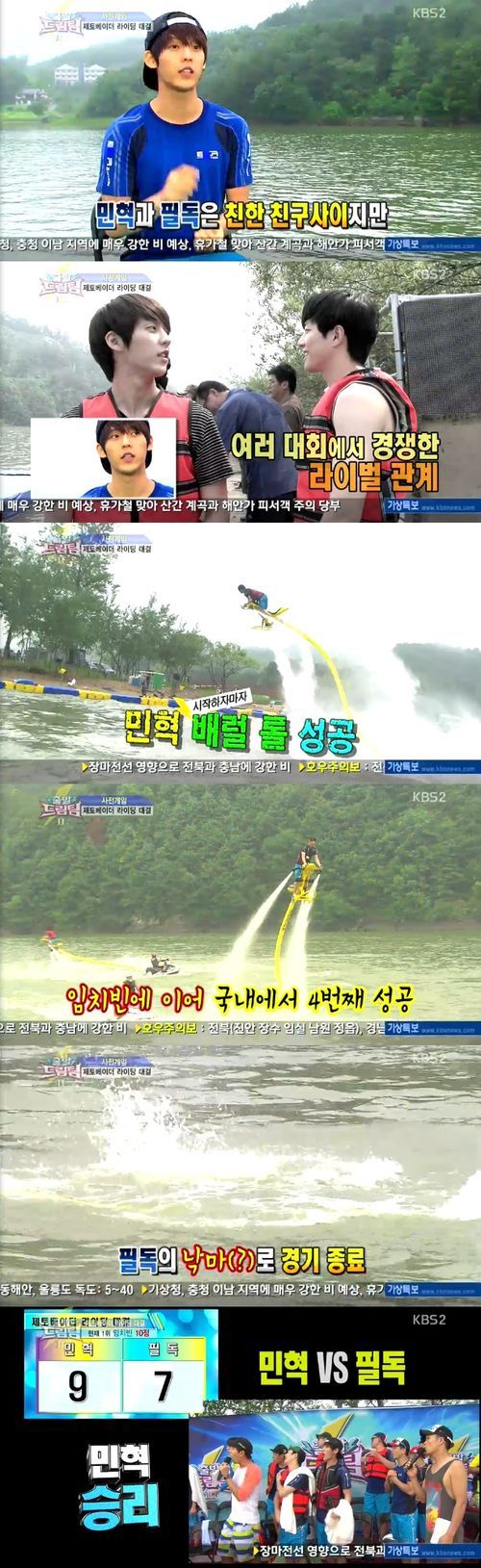 이어 대결에서 민혁은 공중에서 한 바퀴 도는 배럴롤에 성공, 국내에서 4번째로 배럴롤에 성공했다.