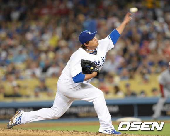 28일(한국시간) 미국 캘리포니아주 로스앤젤레스 다저스타디움에서 열린 2013 메이저리그 LA 다저스와 신시내티 레즈의 경기, 류현진이 7이닝 1실점 9탈삼진으로 호투하고 있다.