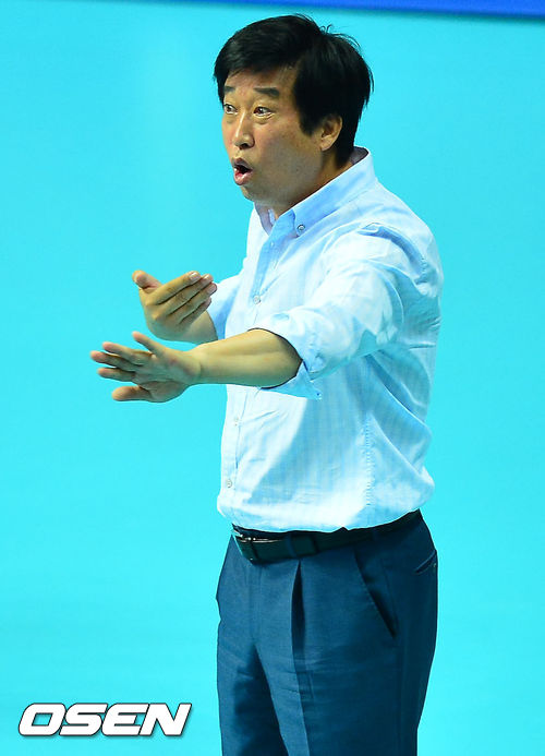 28일 오후 경기도 안산시 상록수체육관에서 열린 '2013 안산-우리카드컵 프로배구대회' 남자부 결승 현대캐피탈과 우리카드의 경기, 현대캐피탈 김호철 감독이 지시를 내리고 있다.