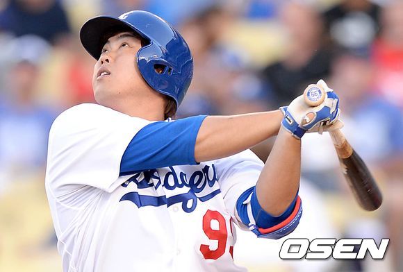 2회말 LA 류현진이 외야플라이를 치고 있다. /sunday@osen.co.kr