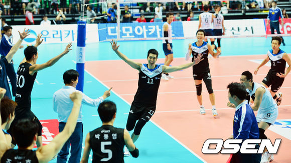 경기를 마치며 현대캐피탈 선수들이 기뻐하고 있다. / rumi@osen.co.kr