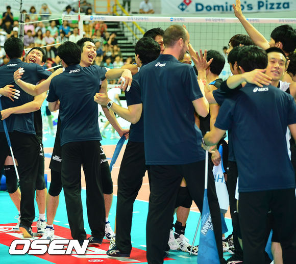 경기를 마치고 현대캐피탈 선수들이 코트 위에서 기뻐하고 있다. / rumi@osen.co.kr