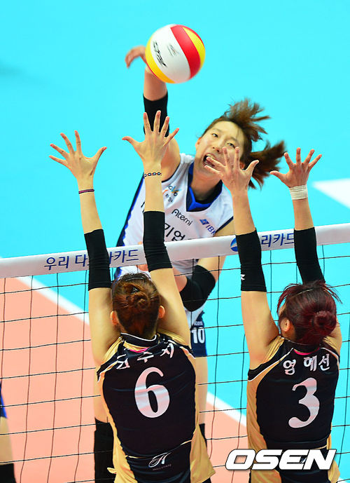 28일 오후 경기도 안산시 상록수체육관에서 열린 '2013 안산-우리카드컵 프로배구대회' 여자부 결승 현대건설-IBK기업은행 경기,IBK기업은행 박정아가 강타를 날리고 있다.