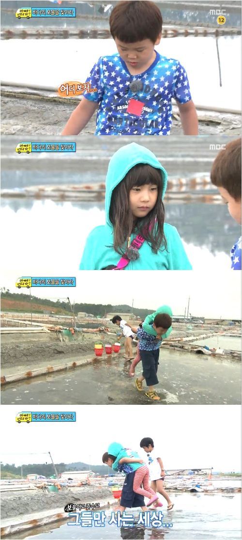 윤후는 28일 방송된 MBC 예능프로그램 ‘일밤-아빠 어디가’에서 송지아가 물에 발이 젖을까봐 염전에 들어오지 못하자 “오빠가 업어줘?”라고 자상하게 물었다.