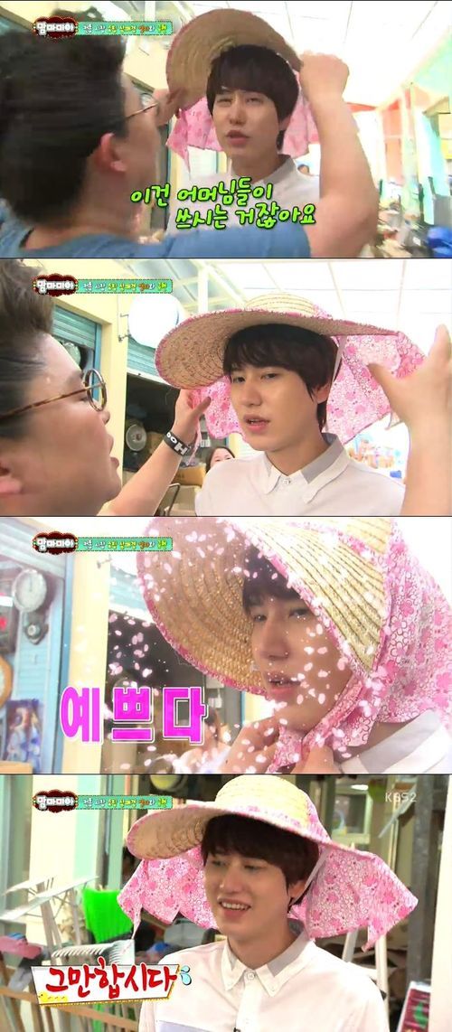 규현은 28일 오후 방송된 KBS 2TV 주말드라마 '해피선데이-맘마미아'에서 MC 이영자와 함께 전라남도 화순의 시장을 돌아다니다 이영자가 씌워준 핑크색의 모자를 쓰게 됐다.