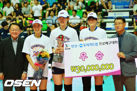뒤이어 열린 여자부 결승전서는 IBK기업은행이 창단 후 첫 컵대회 우승컵을 품에 안았다. IBK기업은행은 현대건설을 3-0(25-20, 25-13, 25-17)으로 완파하고 정상에 올랐다. '좌우 쌍포' 김희진과 박정아는 각 20점, 16점을 올리며 우승의 일등공신이 됐다.