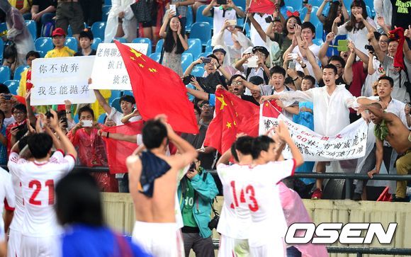 경기후 중국 응원단이 선수들을 향해 박수를 치며 격려하고 있다./jpnews@osen.co.kr